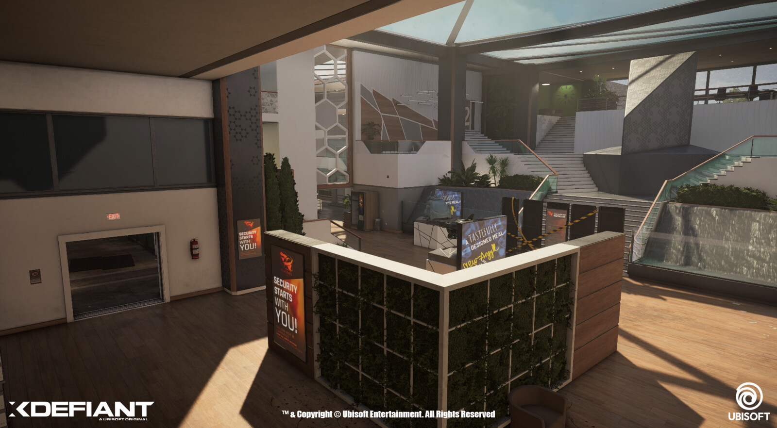 I had the privilege to work on the Skell City map for XDefiant. I was responsible with creating the main campus interior, exterior, and with some of the courtyards surrounding it. The biggest challenge on this map was creating a new space that would fit in the world of Ghost Recon Breakpoint. We did an extensive amount of exploration on the architecture with the concept and design departments having important, key voices on making sure we hit the art style while also fitting for our game. In addition to modeling and texture work, I was tasked with integration, optimization, and upping the resolution of different models to hit the graphic fidelity we had on XDefiant. Sundeep, Ryan, and I shared responsibilities on some of the larger planters and sidewalk work.